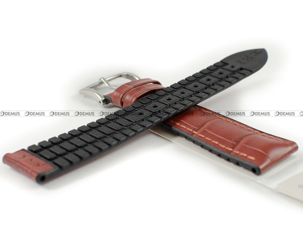 Pasek skórzano-kauczukowy do zegarka - Hirsch Paul 0925028070-2-20 - 20 mm brązowy