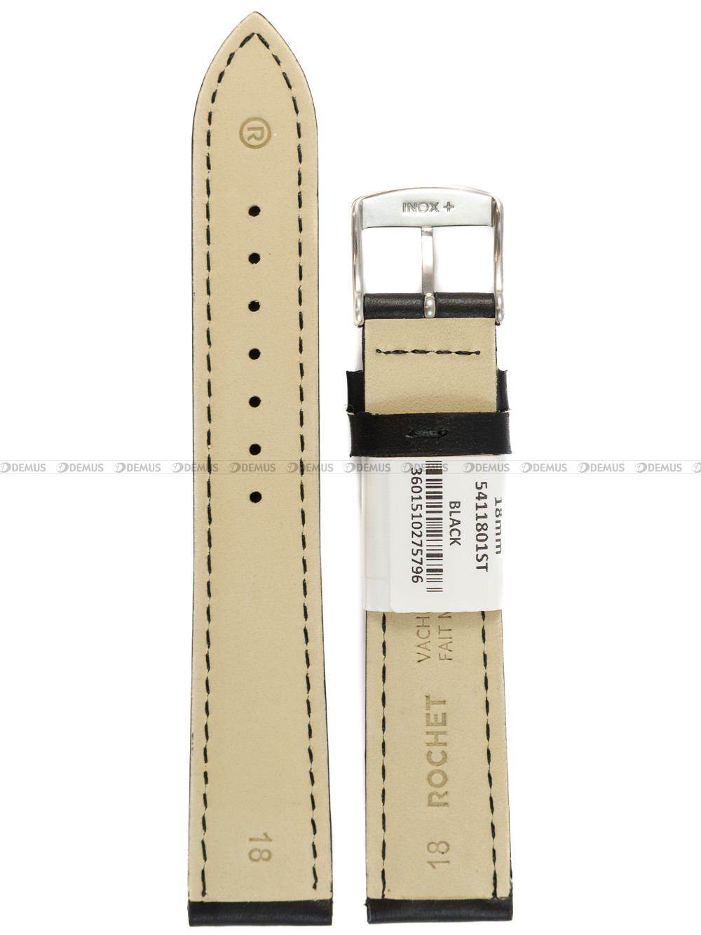 Pasek skórzany do zegarka - Rochet Miami 5411801ST - 18 mm - Czarny