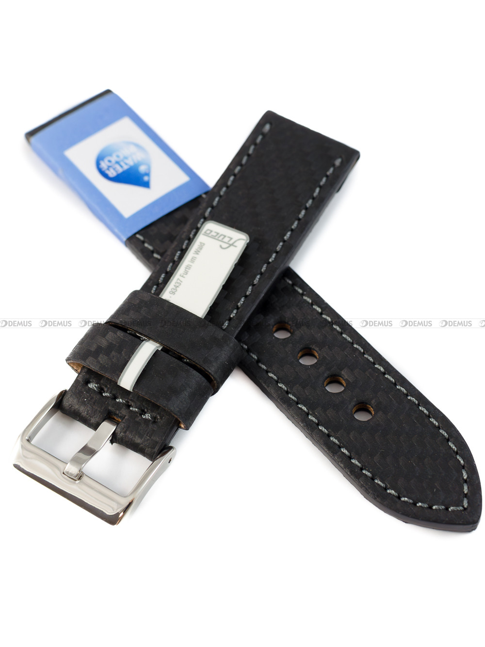 Pasek skórzany do zegarka - Fluco Hydra Carbon 343PANM-01-22 - 22 mm - Wodoodporny