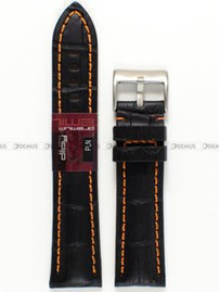Pasek skórzany do zegarka - czarny z fakturą z pomarańczowym przeszyciem - Diloy 395.22.1.12 - 22 mm